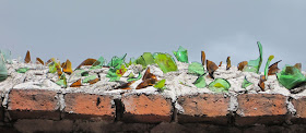 I usually find this glass-on-top-of-walls business ugly, upsetting and/or depressing, but for some reason this time around I was struck by how beautiful it is. All of these were discovered in various alleyways in San Miguel de Allende.